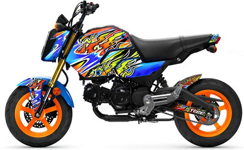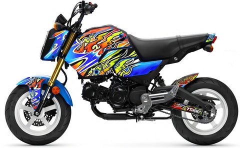“Honoo” (炎) the Japanese word for flame, blaze, or fire. More than just literal flames, it represents intensity passion, energy, and raw emotion. Designed specifically for the 2025–2026 Honda Grom with a blue base, this kit delivers a bold, fiery contrast that demands attention. Clean, aggressive, and built to flow seamlessly with the Grom’s lines."